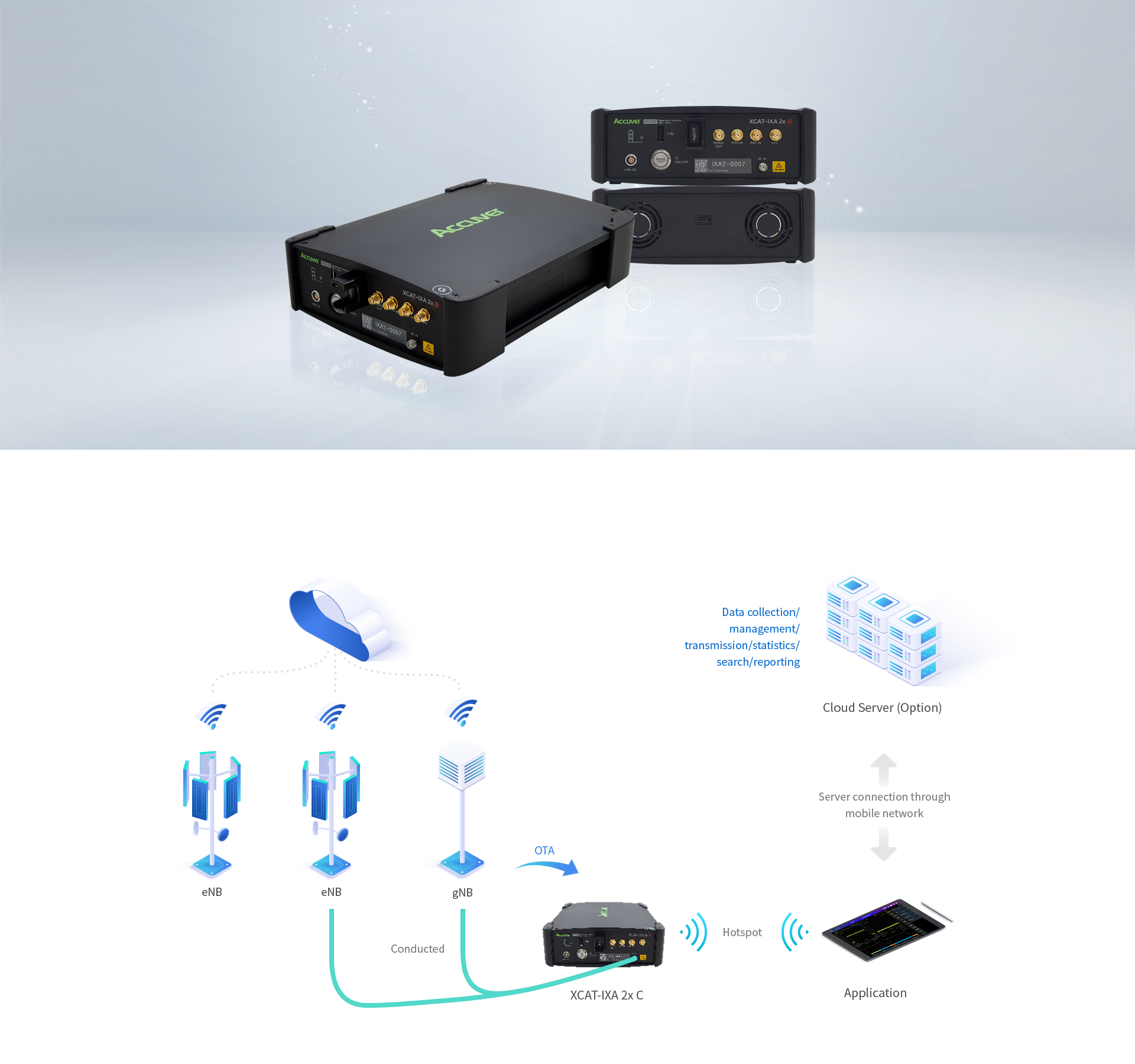 XCAT-IXA is specialized handheld 5G-NR spectrum analyzer integrated with cloud server which supports autonomous measurement. This solution offers and opportunity to reduce OPEX and CAPEX across the whole network lifecycle, from initial deployment to maintenance and upgrades, by saving up front equipment cost and staffing expense.