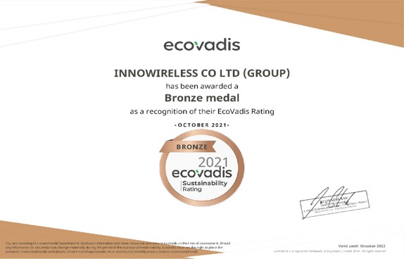 Innowireless has been awarded a Bronze medal by EcoVadis