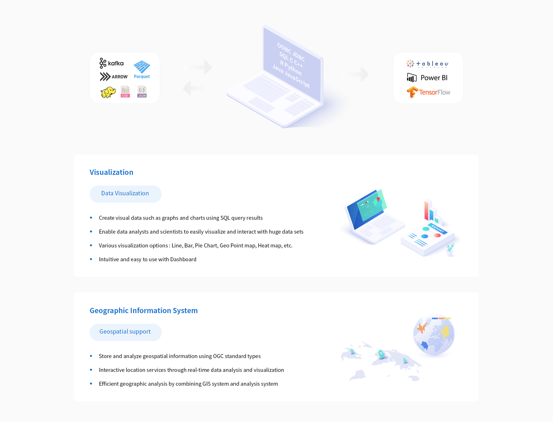 - Based on open Columnar Memory Format |