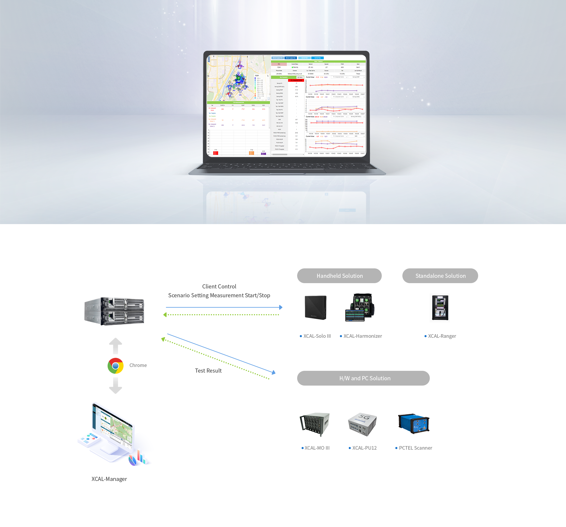 XCAL-Manager is a server-based automated measurement and analysis solution to provide fully systematic and non-stop remote control, real-time monitoring, and measurement result analysis. It is an optimization solution that can measure without any limitation of time and place, be provided with fully automated system via centralized server as it does not require any standing-by engineers anymore. XCAL-Manager maximizes measurement efficiency with minimized cost.