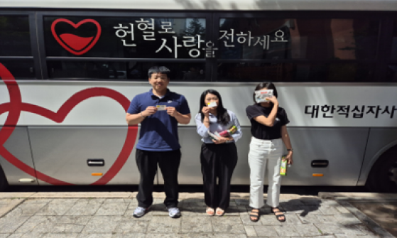 따뜻한 사랑의 나눔, 단체헌혈 혈액 수급 안정화에 기여하기 위해 한마음 혈액원과 사랑의 헌혈 캠페인을 함께 진행하였습니다. 사랑의 헌혈 행사는 헌혈버스가 사업장으로 방문하여 임직원이 자발적으로 참여하는 캠페인으로 2024년부터 연 1회 진행하고 있습니다.